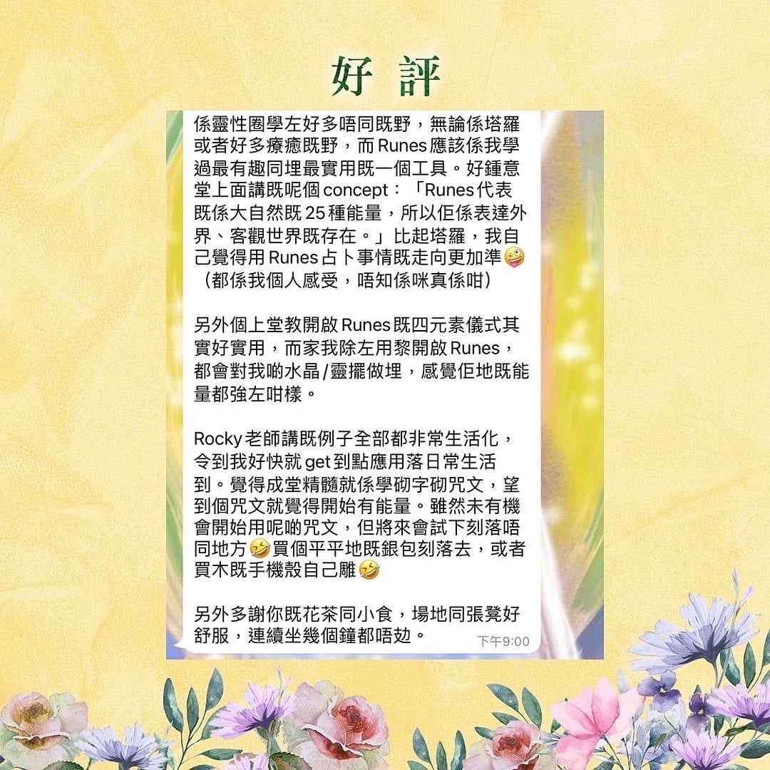 🌳盧恩符文占卜及魔法課程 🌳 導師:Rocky Ho @asgaror_workshop [第十四屆·三四月週末班] 2024年2月24-25日(Sat-Sun) 2:30PM-9:00PM 2024年3月23-24日(Sat-Sun) 2:30PM-9:30PM 初階 3280HKD 進階 4280HKD 兩階合報:6880HKD 早鳥價格:6380HKD 🌕報名送巫師手製盧恩符文 價值380HKD (可選 鎢鋼石、拉長石、乳白水晶、黑曜石) 或以優惠價 350HKD 購買手製鹿角盧恩符文 價值680HKD 人數:8人 (可自組小組另約時間 亦另設一對一教學,請看後文) 地點:Herne The Ancient Forest 或 荔枝角工作室 (此為現場+網上班 可選擇Zoom上課) 盧恩作為維京民族的古文字,每個文字都代表了大宇宙中的其中一種力量,蘊含著最原始的宇宙力量。而學習盧恩符文不單止是學習占卜技巧,也是認識大自然、宇宙當中,蘊含著什麼能量,與這些能量的特性,以及如何與這些能量共存及合作。 盧恩符文由24種宇宙不同的能量組成,於進行堂上教授的聖化儀式後,每次使用盧恩符文時都是與宇宙間的不同能量互動,並與宇宙直接溝通。 本課程除了傳授關於盧恩符文的知識及占卜技巧外,亦會教授關於北歐魔法及咒文的操作技巧。透過將符文組合並雕刻在水晶、木、金屬或紙上,便可賦予使用者力量,帶來相應的效果,感應原始的宇宙力量。 🌕塔羅與盧恩符文差異🌕 塔羅集中解讀潛意識及心理狀況,因此很容易受解讀者的主觀意識、直覺、價值觀所影響;而盧恩符文集中解讀外界事件所帶來客觀影響,占卜事情發展時,會有更明確的答案。而每次的占卜,無論以任何方式解讀,都只會有一種答案,更不容易受個人執念影響,解讀也更為精準。 ☀️初級內容☀️ (一)盧恩符文的起源及神話解說 (二)盧恩符文組合的原理及特性 (三)盧恩符文的啟動儀式 (四)解釋25個盧恩符文的代表象徵及含義 (五)盧恩符文的正逆位含義 (六)利用盧恩符文占卜流程及技巧 (七)盧恩符文占卜示範及練習 🌈高級內容🌈 (一)進入奧丁的九夜倒吊之旅 深度學習盧恩符文的形成過程 (二)深度學習盧恩符文的正逆位含義 (三)利用神話巧妙記憶25個盧恩文字 (四)高階盧恩占卜技巧 (五)盧恩符文的魔法應用——護符(幸運、守護愛情關係、身體健康) 完成以上課程後可為自己、他人進行以盧恩符文進行占卜及施行魔法,也可以製作護符,將符文雕刻或放置於於手機殼、錢包、書本、手袋任何物件身上。 盧恩符文學生購買任何盧恩護身符、法杖、靈擺可獲85折。 🧙🏼♂️關於導師Rocky Rocky老師從直至於年輕時開始接觸神秘學, 從而選擇了Runes作為基礎。不斷鑽研盧恩符文這個範疇,目前已具20年的實踐及教學經驗。 在多年的實踐及研習經驗中,Rocky從開始明白大宇宙的力量運作的方式,並了解其於人性、群體及自然當中的應用。現將二十年所學傾囊相授。 Rocky老師曾受星島日報及Yes!專訪,於過程中亦受藝人Twins及胡琳共同推薦。 🕊一對一教學 9880 兩階合報 一對一的課程可自定上課時間、進度,導師亦會於課堂上與你進行一對一的訓練及練習。教學內容及方法量身訂造,及時糾正錯誤及提供適當建議,協助你更深度地學習並實踐盧恩符文。適用於希望深入鑽研盧恩符文的學生。 駐:一對一教學時長略有調整,詳情請PM查詢。 一對一每月上限2個學生 報名方法:IG DM或聯絡Whatsapp +852 55285258