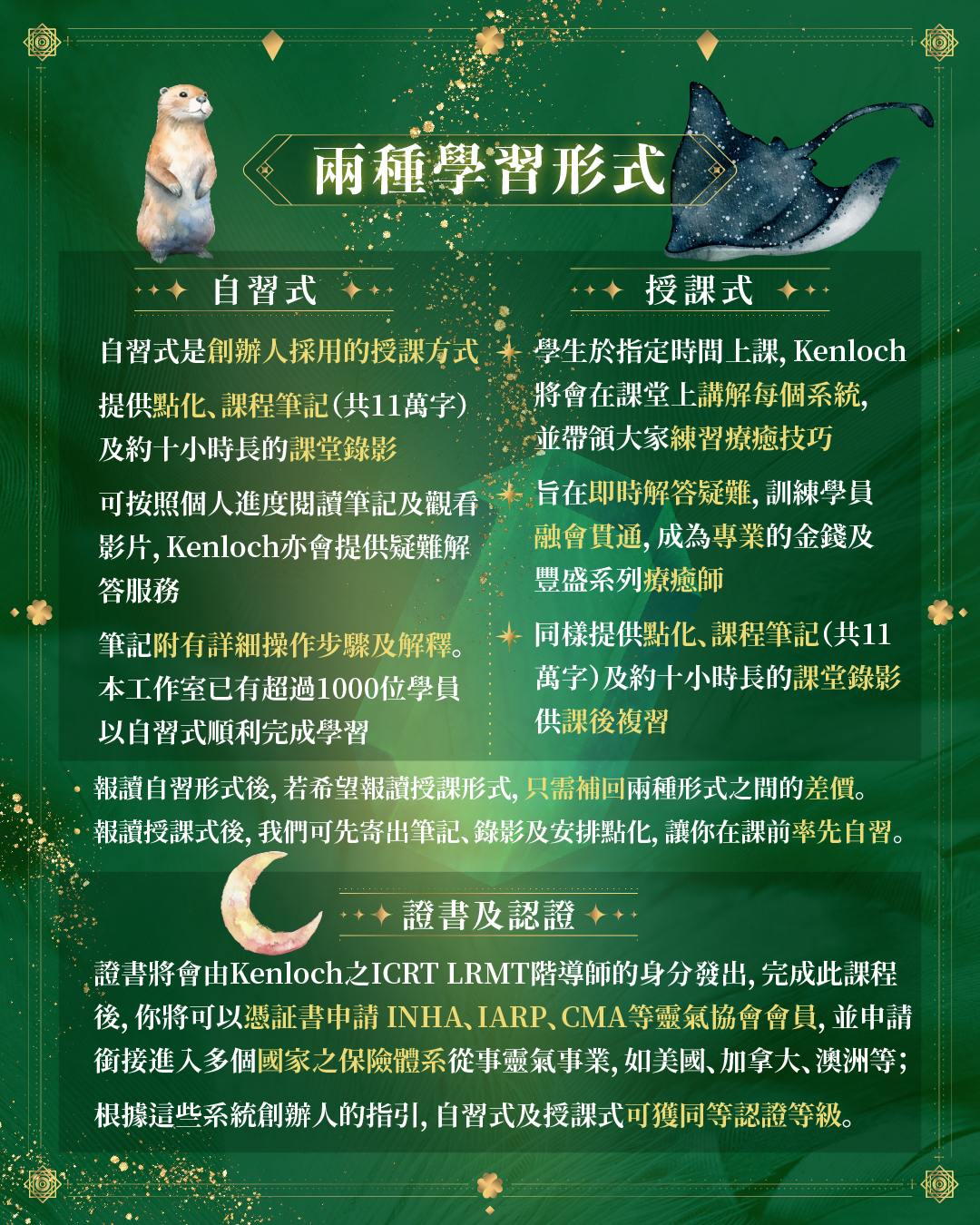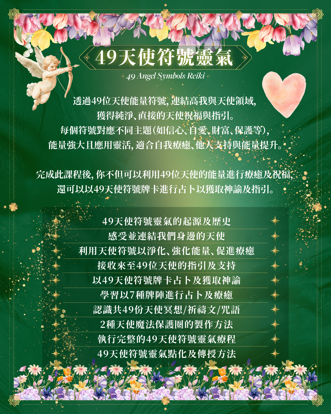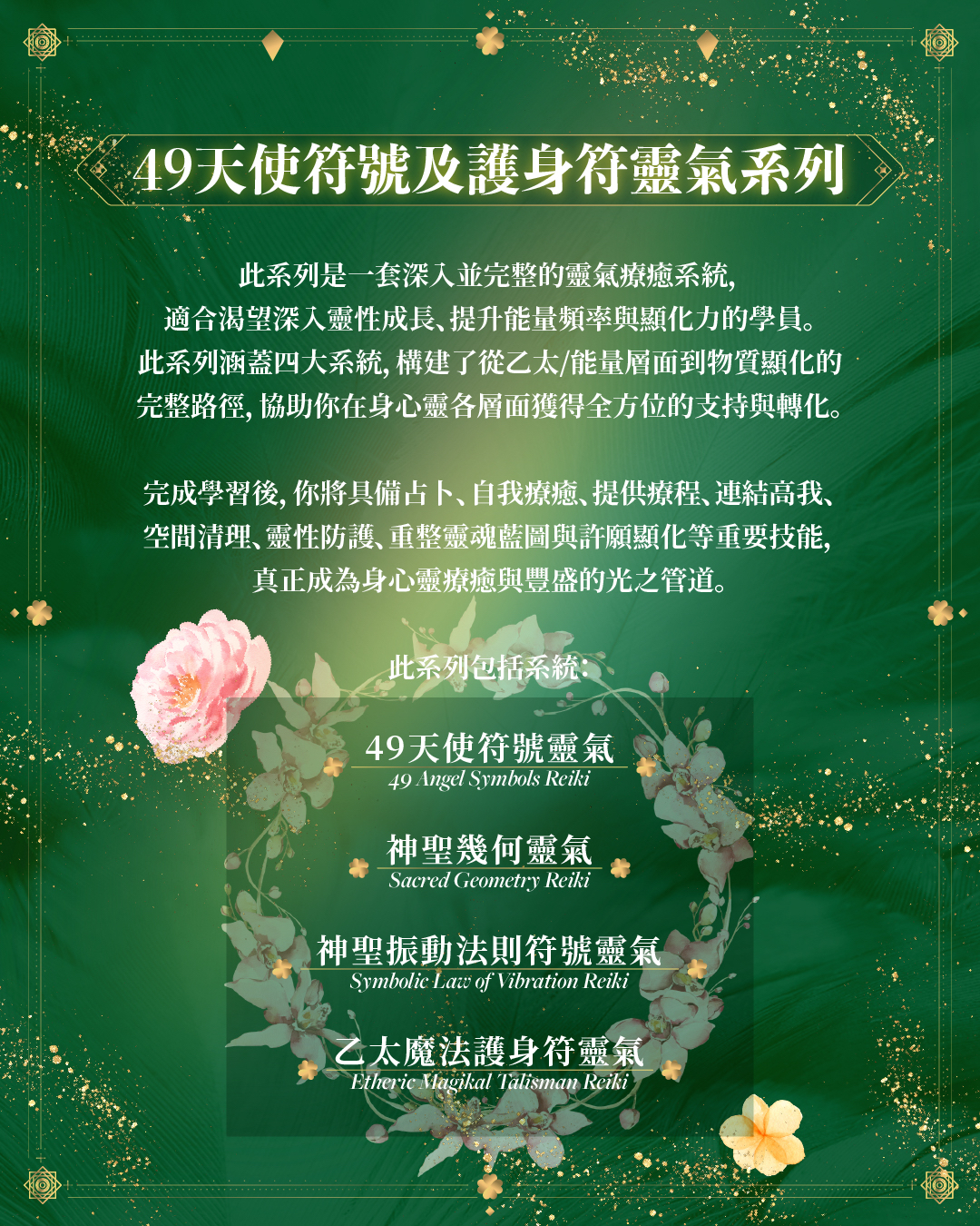 🪽49天使符號及護身符靈氣系列 49 Angel Symbols and Talisman Reiki Series 💎 「喚醒你的內在煉金術。」 “Awaken your Inner Alchemy. “ [🌕線上課程 🌍] 2026年1月10-11日(六至日) 9:30AM - 3:30PM🌟廣東話班/附普通話翻譯🌟 🌕1111門戶•超強顯化能量🌕 *授課式一年內開課一次。 🌈此系列包括系統🌈 🌕49天使符號靈氣 49 Angel Symbols Reiki 🌕神聖幾何靈氣 Sacred Geometry Reiki 🌕神聖振動法則符號靈氣 Symbolic Law of Vibration Reiki 🌕乙太魔法護身符靈氣 Etheric Magikal Talisman Reiki (詳細課程內容、及介紹請查看此Post圖片/本工作室官方網站。) 全系列授課式:4280HKD 全系列自習式:3580HKD* *如逐一課程分開購買,原價共為6288HKD。 *可另外以388HKD加購正版49天使符號牌卡 🌟首三十位報名附贈正版49天使符號牌卡🌟 🌈兩種學習形式🌈: 【自習式】 🌟自習式授課是系統創辦人所採用的授課方式 🌟提供點化、課程筆記(共14萬字)及約十小時長的課堂錄影 🌟可按個人進度閱讀筆記及觀看影片,導師也會提供疑難解答服務 🌟筆記富有詳細操作步驟及介紹,本工作室已有超過1000位學員以自習式順利完成學習 【授課式】 🌟學生於指定時間上課,導師將會在課堂上講解每個系統,並帶領大家練習療癒技巧 🌟旨在即時解答疑難,訓練學員融會貫通,成為專業的金錢及豐盛靈氣療癒師 🌟同樣提供點化、課程筆記(共14萬字)及約十小時長的課堂錄影供課後複習 *報讀自習形式後,若希望報讀授課形式,只需補回兩種形式之間的差價。 *報讀授課式後,我們可先寄出筆記、錄影及為你安排點化,若你在課前率先自習。 🌞🌳證書及認證🌳🌞 ☀️證書將會由Kenloch之ICRT LRMT階導師的身分發出,你將可以憑証書申請 INHA、IARP、CMA等靈氣協會會員,並申請銜接進入多個國家之保險體系從事靈氣事業,如美國、加拿大、澳洲等; ☀️本課程同時提供授課指南及詳細的點化步驟,完成此課堂後,你將可成為合資格的金錢及豐盛靈氣系列療癒師及導師; ☀️根據這些系統創辦人的指引,自習式及授課式可獲同樣的認證等級。 🌈關於49天使符號及護身符靈氣系列🌈 (每個課程的詳細介紹,請查看此Post圖片或本工作室網站) 49天使符號及護身符靈氣系列是一套深入並完整的靈氣療癒系統,由Kenloch多年實踐、驗證與集成,適合渴望深入靈性成長、提升能量頻率與顯化力的學員。此系列涵蓋四大系統,構建了從乙太/能量層面到物質顯化的完整路徑,協助你在身心靈各層面獲得全方位的支持與轉化。 🪽49天使符號靈氣:透過49位天使能量符號,連結高我與天使領域,獲得純淨、直接的天使祝福與指引。每個符號對應不同主題(如信心、自愛、財富、保護等),能量強大且應用靈活,適合自我療癒、他人支持與能量提升。 本課程展示的所有天使符號。每一個符號都充當連接「天使世界的鑰匙」。每個符號背後都有一位或多位天使為其注入能量並激活該符號。這些符號的和諧振動幫助我們意識到自己的發展潛力。天使符號可以化解阻礙,將負能量轉化為正能量,從而幫助我們實現內在和諧。它們還能強化並療癒我們的靈魂結構。 💎神聖幾何靈氣:結合宇宙結構藍圖與靈氣技術,藉由幾何符號協助清理、平衡脈輪與能量場,並重塑自我內在模式。這不僅增強直覺與高我連結,更能協助突破限制性信念,促進個人成長與靈魂目標的實現。 🌕神聖振動法則符號靈氣:運用三大煉金符號,快速校準和提升個人能量頻率,協助釋放舊有負面潛意識、整合三種心智(高我、潛意識、顯意識),並以高頻狀態顯化願望。這是顯化力與自我轉化的強力工具。 🌸乙太魔法護身符靈氣:學習在乙太層面創造強大護身符,結合各種古老與現代符號(如安卡、五芒星、荷魯斯之眼、赫爾墨斯之杖等),為個人、空間、事件帶來保護、幸運、健康與靈性支持。護身符可直接在能量體、空間或遠距發送,操作簡單而效果顯著。 本系列課程無需任何先決條件。這些系統的能量源於宇宙的愛與智慧,他們共同合作,運作於生命的每一個層面。生命以及萬事萬物皆由能量組成,因此當我們掌握使用能量的技巧、理解能量流動的原始法則,便可將靈氣傳送至生命各事各物中,使我們更和諧地與萬物共存,創造平靜、喜悅及豐盛的生活。 完成學習後,你將具備占卜、自我療癒、提供療程、連結高我、空間清理、靈性防護、重整靈魂藍圖與許願顯化等重要技能,真正成為身心靈療癒與豐盛的光之管道。 🌳靈氣基礎 Reiki Foundation🌳 為提高學生對靈氣知識、技巧及相關心法素養,Kenloch會提供靈氣基礎教學,使學生可更全面地認識靈氣: 第一章:靈氣的定義、來源及認識點化 第二章:靈氣的運作模式、脈輪、氣場及七層靈性能量體 第三章:開始使用靈氣、符號的運用及啟動方法 第四章:通用技巧:合掌、靈視法、病腺掃描、邪氣切、療癒手位、氣場保護及空間清理 第五章:遙距及面對面點化、製造生命靈光球 Chi Ball的方法 第六章:靈氣常問問題、成為療癒師及導師須知 🌕49天使符號靈氣 49 Angel Symbols Reiki 詳細介紹:https://kenlochhealingspace.boutir.com/i/UDnFnUgAA 49天使符號靈氣是一套結合靈氣療癒與天使能量的完整系統,透過49個不同天使的符號,協助我們在身心靈各層面獲得指引、療癒與提升。每個符號都蘊含特定天使的祝福與能量,可用於自我療癒、支持他人、消除負面情緒、平